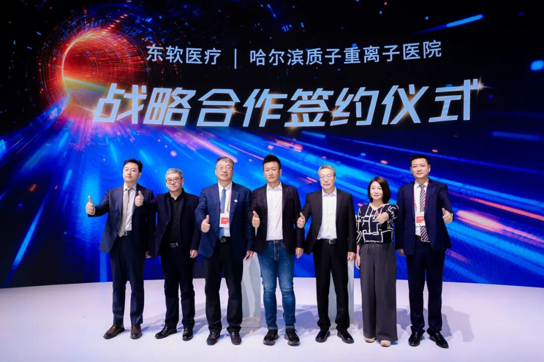 哈尔滨质子重离子医院创始人陈野等一行领导出席签约仪式。该院是三甲肿瘤专科医院,聚焦国际前沿肿瘤精准治疗。双方将融合肿瘤粒子治疗临床优势与东软医疗影像、AI技术,打造国际一流的智慧化质子重离子治疗示范中心。